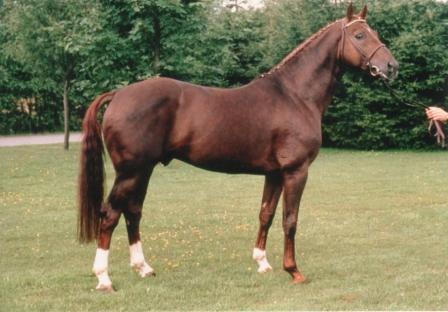 Brentano 11 is by Bolero, who was above all most impressive by his elegance and tremendous gaits. He was a foundation sire of the very top class. He always transmitted himself, passing on endless nobility, rhythmic movement and frequently also his red-golden chestnut colour. His progeny for many years dominated events at the federal championships, provided countless top Verden auction horses, and numerous sons were approved. In dressage competition sport large numbers of his progeny attained high honours. His death at the age of 12 years in 1987 was a shock to the breeding fraternity.