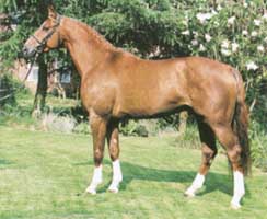 First breeding in 1994. Grand Cru produces horses of substance, with the mind, movement, athletic ability and charm to go to the top. He passes on strong dressage tendencies, and his daughter Gina won the broodmare performance class at the Louis Wiegels Show in 1999. He has 8 licensed sons, 53 state premium mares, 216 main stud book mares, and 91 auction horses. He improves in his offspring for riding type, conformation, dressage ability and jumping. Winning sum of progeny is Euro 186,358.