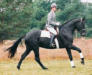 Woronow, a son, currently stands at Celle. His daughter Wienna, similar to her brothers is of black colour and was one of the highest priced Verden auction horses of all time at the sum of DM460,000.00. His progeny are doing well in basic sport and have brought their sire a peak position in the FN breeding value rating for dressage. He improves on his progeny very much in riding type and conformation, and dressage ability. Winning sum of progeny is Euro 77,574.00. He has 7 licensed sons, 51 State premium mares, 201 main studbook mares and 82 auction horses. Winning sum of progeny is Euro 116,666.00.
