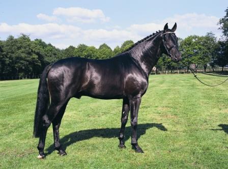 Sandro Hit is a ground-breaking stallion who is influencing dressage horse breeding the whole world over. Sandro Hit foals and horses are regularly sold at auction for prices in excess of Eur 100,000. Three year old St.Emillion was sold at the PSI Auction in 2008 for Euro 550,000. Sandro Hit is a regular record breaker and the list of his successful offspring is endless. His son Soliere won the 2008 Hanoverian Championship and more than 10 of Sandro Hit’s progeny have followed this striking black World Champion and German Champion’s footsteps by winning the German Championships. His offspring are competing in advanced level dressage Salieri OLD has won several international Grand Prixs with his rider, Victoria Max-Theurer.