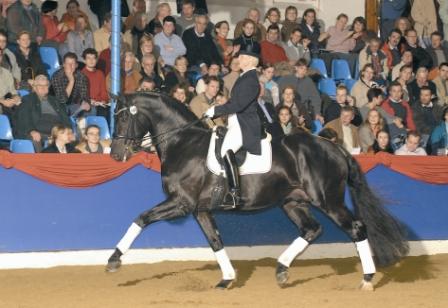 Striking black maestro in the form of the classic dressage horse. Rosario wows the crowds with his outstanding temperament and a maximum of rideability. Incredible movement together with a natural ability to collect and convincing rideability values makes this black stallion a real gem. Rosario is Triple Oldenburger County Champion in a row! He finished third in the final qualification at the young horse world championships behind Florencio and Lord Loxley and has now successfully established himself at advanced level dressage. Its no surprise that his progeny are in high demand. The young stallion Run for Glory was sold for E130,000 via the AOS auction and in Vechta the bidding on the mare Vogelhochzeit reached E90,000. Royal Mirage, who was sold via the PSI auction, won young horse classes and the approved stallion Rosandro was ranked second in the dressage division of his 30 day performance test, receiving a 9 for his trot and rideability and an 8.88 for his walk. An index of 152 points puts Rosario in the upper division on the list of top producers in Germany. His sire Rubinstein made an impact on an entire generation of horses. Inherent in the dam’s sire Castro is the famous bloodline of the Holstein Calypso 1 – sought after for his powerful movements and ridability. Rosario’s jet black dam Elfenlicht descends from a highly successful Oldenburg dam line from which numerous licensed stallions and sports horses originate. Rosario – a fantastic prospect for demanding dressage breeders. Approved Oldenburg, Hanover, Rhineland, Westphalia, Sweden, South German Assoc. and France.