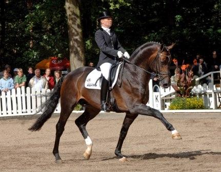 The fairy tale career of Zuchthof Klatte’s Bundeschampion can be quickly outlined: A finalist in Warendorf three times, the best 6 yo dressage horse in Germany, many first places in advanced (S) level dressage classes at the age of seven. Three starts in three days and three victories in Prix St Georges and Intermediaire 1. He need not fear any of his competitors: he also placed with the best in the qualifiers for the Nurnberg Burg Pokal! The career of his sire Fidermark, the most popular Florestan son, was very similar. Farewell 111 set accents in breeding right from the beginning and was awarded the I-c main premium in Oldenburg in 2004.