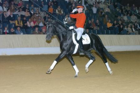 Dancier was overall winner at his performance test with an amazing score of 158.46 for dressage and a 10 for trot! Clearly Celle expects great things of this beautiful young stallion in the future! Dancier received the following breakdown of scores at his performance test: 8 character, 9 temperament, 9 willingness, 8 conformation, 10 trot, 9.5 canter, 9.2 walk, 9.3 rideability, 6.6 jumping ability. Dancier went on to excel at the World Championships for Young Dressage Horses in Verden.