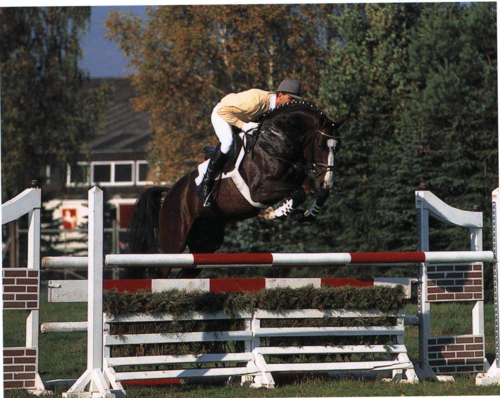 San Brasil is of great nobility. He is a large-framed riding horse type with excellent conformation as well as unlimited show jumping ability. He is a very athletic stallion and at the stallion licensing in 1999 he was awarded the ‘best show jumping stallion’ of his year. He confirmed this award and all other high expectations of him at his performance test in 2000. San Brasil has very good mental qualities and a high rideability which led towards placing him in second place in jumping. He is powerful and well-muscled. Like the winner of the performance test Le Primeur, the very elastic San Brasil is also a product of the Hanoverian breeding programme for show jumpers (PHS).